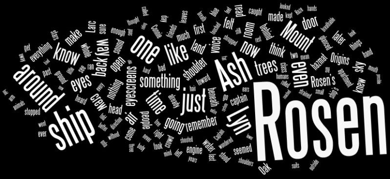 She posted about a website called Wordle, where you can enter a block of text (or if you're OCD like me, 20 pages of it), and it spits out a word-cloud based on that text. You can change the fonts and colors around to make it pretty, but basically, the word-cloud shows you what words you might be overusing in that text.